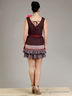 Детали: на спине V-образный вырез с оригинальной завязкой; низ изделия дополнен контрастными вставками и оборками
