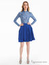 Замечательное платье с длинными рукавами и воротником стойка. Модель с застежкой на молнию на спине. Отрезное по линии талии, платье с очаровательной пышной юбкой ослепительно синего цвета сделает Вас королевой вечера!