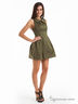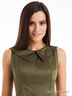 Прелестное платье необычного оливкового цвета с рельефными декоративными швами, формирующими линию талии. Модель с очаровательным воротничком и оригинальным декольте. Молния на спинке. Отличный вариант для Вашего гардероба.