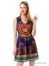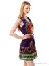 Шикарное платье в стиле "этно" для ярких и уверенных в себе девушек. Сияющий материал в фиолетовых тонах и поражающий воображение восточный узор создают эффектный образ. Модель с элегантной кожаной вставкой на поясе. Восхитительный вариант для тех, кто желает быть в центре всеобщего внимания.