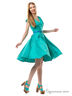 Обворожительное платье ультрамодного дизайна. Модель с V-образным вырезом горловины и поясом на талии поможет раскрыть Вашу женственность и неповторимое чувство стиля. Платье эффектной мятной расцветки с фирменным темно-голубым поясом, подчеркивающим талию.