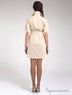 Стильное платье из плотной ткани. Стояче-отложной ворот с запахом. Укороченные рукава с отворотами. Талия подчеркивается широким поясом. Яркая и лаконичная модель.