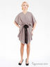 Потрясающе платье из легкой, плотной ткани. V-образный вырез горловины. Цельнокроеные свободные рукава "крылья бабочки" Талия подчеркивается контрастным бантом. Пояс собран крупными складками. Фигурная линия подола.