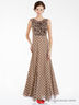 Изящное длинное платье из шифона в крупный горох. Округлый вырез горловины. Полочка декорирована многорядными горизонтальными оборками. Завышенная линия талии.