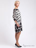 Оригинальное платье-футляр из гладкой ткани с модным печатным рисунком. Вырез горловины - лодочка. Укороченные свободные рукава с манжетами.