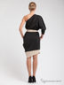 Оригинальное платье из легкого шифона. Ассиметричный вырез горловины. Свободный рукав "летучая мышь". Талия подчеркивается завязывающимся поясом. Юбка дополнена фигурной контрастной вставкой. Будьте всегда в центре внимания!