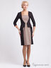 Эффектное платье из плотной ткани. Вырез горловины - каре. Прямые рукава3/4. Рельефные швы декорированы изящными закрепленными драпировками. Полочка и юбка дополнены контрастными вставками.