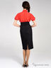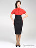 Стильное платье-футляр из полухлопковой ткани. Ворот-стойка. Короткие цельнокроеные рукава с манжетами. Полочка декорирована оригинальной драпировкой. Лиф выполнен из контрастной ткани.