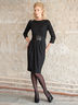 Стильное приталенное платье с округлым вырезом горловины и рукавом 3/4. Юбка декорирована драпировкой, сзади застежка на молнию и шлица. Отличный вариант для настоящих леди.