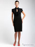 Классическое платье-футляр прилегающего силуэта. Ворот-стойка с застежкой на пуговицу, короткий рукав, полочка декорирована рюшами. Позвольте себе маленькое черное платье!