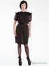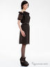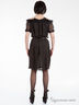 Оригинальное платье из полупрозрачной ткани в некрупный горошек. Модель прямого силуэта. Вырез горловины - лодочка. Декорирован оборками. Короткие свободные рукава с манжетами.