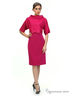 Нарядное платье с широким воротом-стойка и коротким рукавом. Сзади застежка на молнию и шлица. Декоративный пристроченный поясок с бантом. Отличный вариант для выходов.