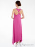 Изящное длинное платье из вискозного материала. Округлый вырез горловины. Широкие лямки, перекручивающиеся на спинке. Фигурная линия подола. Яркая и лаконичная модель.
