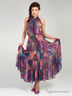 Стильное платье из легкой ткани. Американская пройма. Стояче-отложной ворот. Открытая спина. Длинная юбка, выполненная из многорядных воланов.