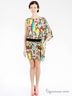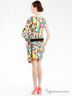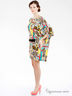 Платье с ас матричным продольным принтом, длина выше колена, низ неровный за счет асимметрии кроя