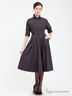 Отличное платье приталенного силуэта с отложным воротом и коротким рукавом. Застежка на пуговицы спереди, два кармана в боковом шве. Отличный вариант для прогулок по городу.