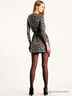 Прекрасное короткое платье приталенного покроя. Модель с длинными рукавами и округлым вырезом горловины. Изделие оформлено абстрактным рисунком.