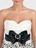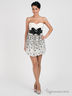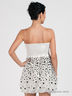 Детали: отрезной топ, юбка мини с оригинальной отделкой, по поясу выполнен бант, по спинке резинка.