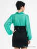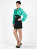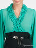 Детали: вырез горловины со сборкой отделан рюшей, юбка классическая и шлевки для ремня, ремень в комплекте.