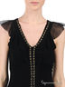 Детали: полочка и рукава декорированы сетчатой тканью и металлическими декоративными элементами