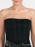 Детали: отрезное по линии талии, вырез горловины V-образный, юбка прямого силуэта, отделка в виде плиссированной вставки.