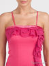 Детали: тонкие бретели, изящная рюша украшает профиль изделия, так же по лифу вставка с плиссировкой, небольшая шлица по низу изделия.