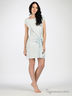 Домашнее платье прямого кроя из тонкого трикотажа. Широкий вырез горловины. Спереди 2 ленты, завязывающиеся как пояс.