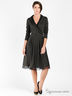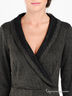 Детали: V-образный вырез с запахом; отложной ворот и низ изделия дополнены кружевными вставками; длинный рукав; втачной пояс; принт - полоска