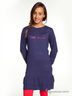 Платье с длинными рукавами и круглым вырезом. Прямой крой. 2 волана с отстрочкой по низу. Налокотники и аппликация "сердце" сзади с рисунком "куриная лапка". Логотип спереди. Размер по росту в см.