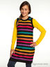 Платье в разноцветную полоску без рукавов с круглым вырезом. Прямой крой. Края в рубчик. Размер по росту в см.
