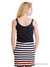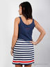 Платье с однотонным верхом, бретелями с декоративными кольцами спереди. Низ в полоску. Логотип сзади.