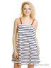 Платье-бюстье с прямым вырезом и узкими бретелями. Расширяется книзу. Закругленный низ с логотипом слева.