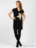 Великолепное платье из тонкого, мягкого полушерстяного трикотажа. Ворот "качели". Короткие цельнокроеные рукава. Полочка декорирована оригинальной аппликацией. Подол дополнен широкой полосой.