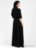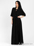 Стильное длинное платье из плотной, пластичной, приятной на ощупь ткани. Фигурный вырез горловины. Воротник-стойка. Эффектные короткие рукава-регланы с односторонними складками. Застежка спереди на кнопки. Отрезная юбка-полусолнце. Два кармана в швах.
