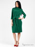 Изящное платье прямого силуэта из плотной, приятной на ощупь ткани. Округлый вырез горловины. Застежка на спине на пуговицу. Два кармана в швах. Платье дополнено съемной баской и шейной лентой.
