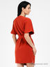 Потрясающее платье из плотной, приятной на ощупь ткани. Округлый вырез горловины. Цельнокроеные короткие рукава. Полочка украшена эффектными складками. Нижняя часть декорирована оригинальными драпировками. Платье дополнено поясом.