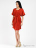 Потрясающее платье из плотной, приятной на ощупь ткани. Округлый вырез горловины. Цельнокроеные короткие рукава. Полочка украшена эффектными складками. Нижняя часть декорирована оригинальными драпировками. Платье дополнено поясом.