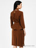 Изящное платье прямого силуэта из плотной, приятной на ощупь ткани. Округлый вырез горловины. Застежка на спине на пуговицу. Два кармана в швах. Платье дополнено съемной баской и шейной лентой.