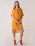Детали: вырез лодочка горловины присборен на резинку, широкие рукава, прямая юбка с ассиметричным кроем низа.