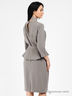 Изящное платье прямого силуэта из плотной, приятной на ощупь ткани. Округлый вырез горловины. Застежка на спине на пуговицу. Два кармана в швах. Платье дополнено съемной баской и шейной лентой.