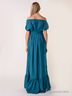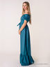 Детали: округлый вырез горловины и рукава присборены на резинку, подол длинной юбки декорирован воланом, модель дополнена широким поясом.
