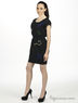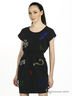 Силуэт: прямой Материал: эластичный трикотаж средней плотности Детали: округлый вырез горловины, короткий цельнокроеный рукав, линия талии подчеркнута трикотажной вставкой, низ посажен на трикотажную манжету, декорировано стразами Стиль: повседневный