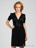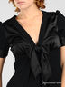 Элегантное платье из креп-сатина. V-образная горловина. Короткие рукава с манжетами на пуговице. Атласный искристый лиф. Декорировано женственным бантом.