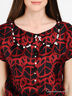 Стильное платье с коротким рукавом и округлым вырезом горловины. Изделие выполнено из шелковистого материала средней плотности. По линии талии вшита резинка. Полочка декорирована пришитыми бусинами. Идеальна для вечерних мероприятий.
