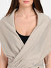 Элегантное платье из шерстяной ткани приталенного силуэта. Глубокий v-образный вырез горловины с запахом. Без рукавов. Втачной пояс украшен золотистым брелоком в форме сердечка. Будьте в центре внимания каждый день!