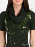 Повседневное платье из мягкой шерстяной ткани приталенного силуэта. Воротник-хомут. Короткие рукава на трикотажной резинке. Изделие искусно украшено бисером и пайетками. Будьте в центре внимания каждый день!
