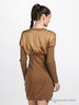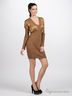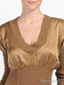 Шикарное женское платье свободного силуэта. V-образный вырез горловины, платье декорировано отделочной атласной ткканью, рукав длинный однокроеный. В нем вы будете выглядеть привлекательно и очаровательно.