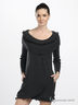 Детали: круглый вырез горловины, длинные узкие рукава, оригинальная отделка лифа