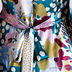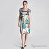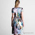 Изящное платье из атласной ткани с модным рисунком и яркой расцветкой! V-образный вырез горловины со вставкой из однотонной атласной ткани. Спинка платья цельнокроеная с вытачками, подчеркивающими фигуру. Так же сзади имеется пояс, который завязывается в кокетливый бант. Спереди лиф платья отрезной, линия талии завышена. Лиф "посажен" на кокетку и слегка присборен. Рукав короткий, с окантовкой по краю. Это милое платье сочетает в себе очаровательную женственность и яркий летний образ!