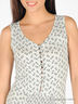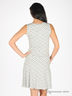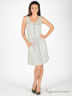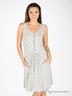 Платье без рукавов. Овальный вырез. Верх застегивается на пуговицы. Присборенная спереди юбка-клёш. 2 накладных кармана спереди.